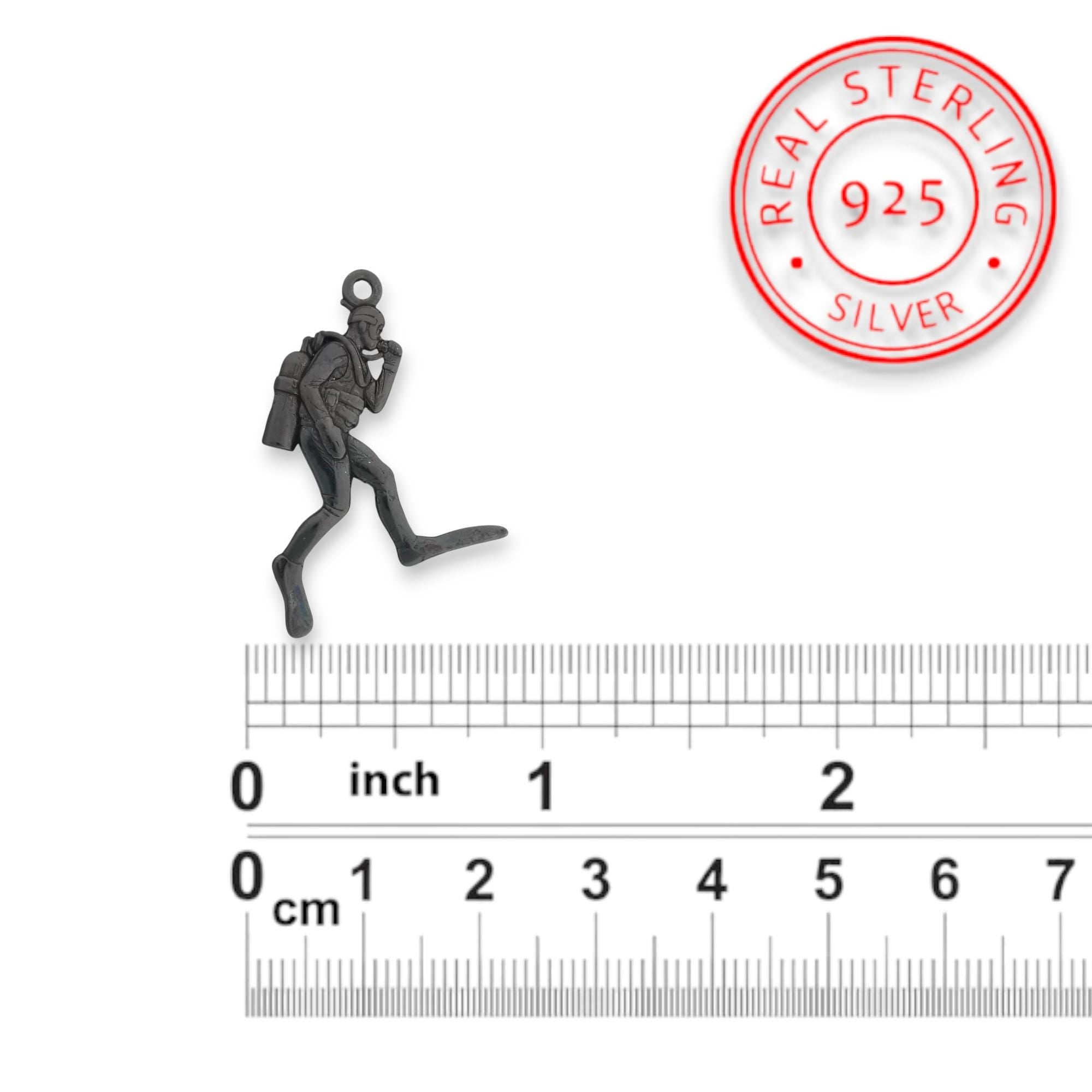 Scuba Diving Jewelry Pendant for Men & Women, Oxidized Black 925 Silver Gift, Handcrafted Diver Charm for Ocean Lovers and Athletes Necklace
